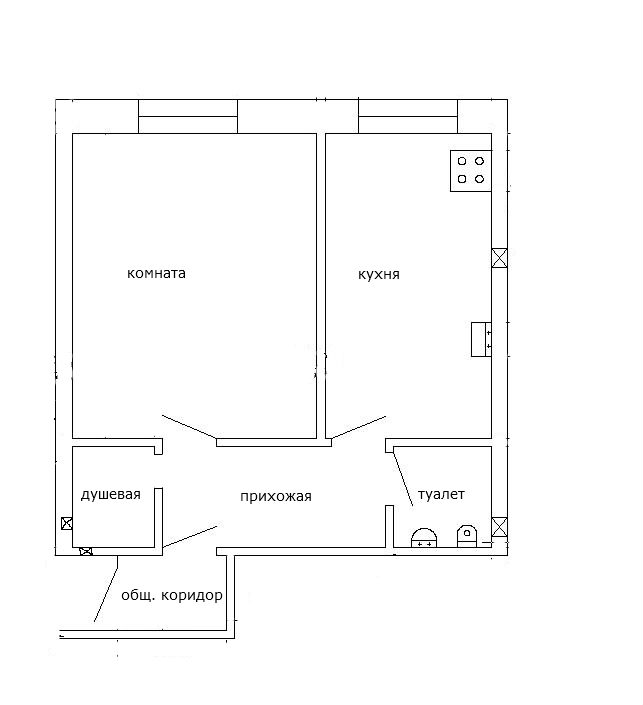 Если душ поставить рядом с унитазом у правой стены напротив двери, то дверь можно оставить в покое. У меня второй санузел такого размера и душевая 90х90, и унитаз, и умывальник (для детей). ---------- Сообщение добавлено 05.12.2010 21:42 ---------- Глупо рассуждать про ЕДИНСТВЕННУЮ комнату как "проходная", "непроходная" Вы собираетесь кого-то поселить в кладовке, чтобы он ходил на кухню, не заходя в комнату? От кого отгораживаться проходом на кухню через коридор? От самого себя? В нас засела "Совковая мечта" иметь все раздельное, непроходное?