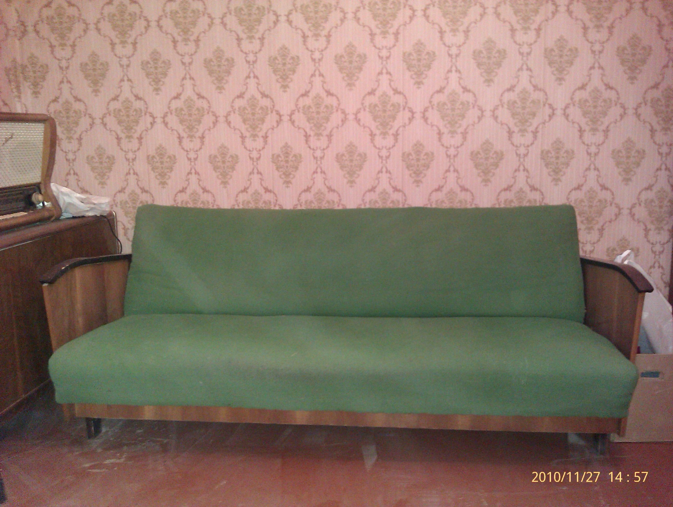 В связи с переездом старая мебель ищет нового хозяина (может быть кому на дачу нужно). В наличии: 1-4 Диван и кресло. Расцветочка веселенькая, зеленая. 5-6 Сервант (с посудой или без) 7-8 шкаф для одежды 9-10 тумбочка 11 журнальный столик 12-13 стулья (3,5 штуки - вообще 4, но один уже не в кондиции) 14 - стол и табуретки кухонные 15-16 - пенал кухонный 17-18 - не совсем мебель, но вот такой ретро-элемент интерьера (может быть даже работающий, но сколько себя помню, его даже не пытались реанимировать). От нового хозяина - самовывоз из центра (ул. Советская), самоспуск из квартиры и темное пиво старому хозяину (или сок и фрукты хозяйке). Все пожелания в личку. Соответсвенно по личке и будут отслеживаться, кто первый.
