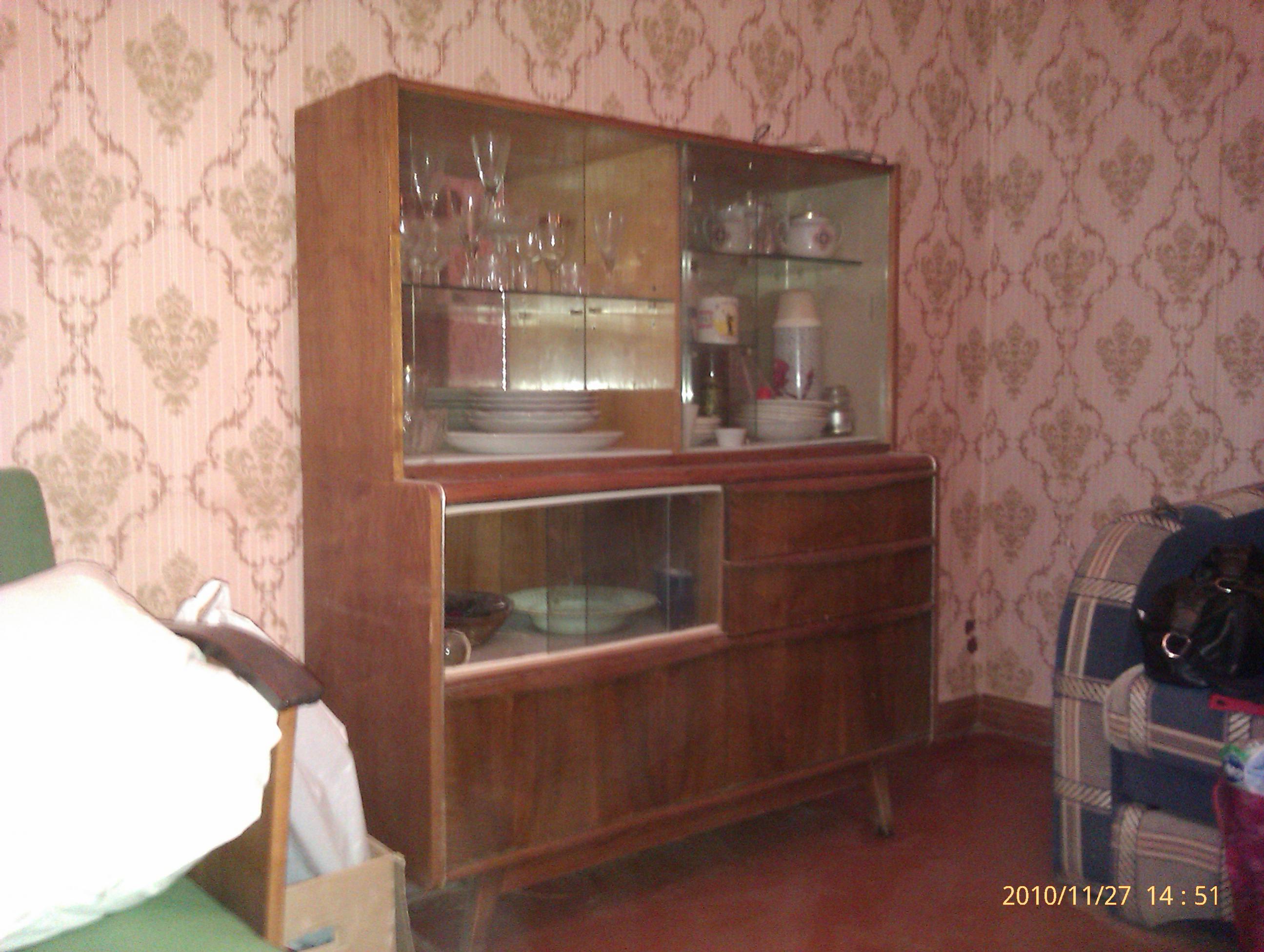 На настоящий момент еще ждут своего хозяина: сервант, шкаф для одежды, 2 тумбочки (1 на фото 9-10, другая - большая - под проигрывателем была), кухонный стол и кухонный же шкафчик-пенал. Есть еще круглый стол, который раздвигается в овальный, но он за деньги. Подробности в личке.