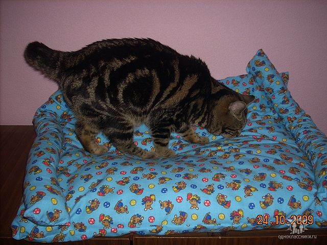 FoXX, у нас тоже руки не оттуда, но вот и домик 3 этажный кошачий осилили и столько уже лежанок котяре нашила, хотя с трудом ровно отрезать могу Можно купить либо поролон, либо синтепон, все это около 100 рублей за метр, плюс какую нибудь теплую, мягкую ткань и все-неужели вы три шва не сделаете сами?