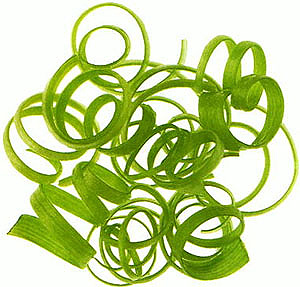 • свекольные сердечки - вырезаются из вареной свеклы специальными формочками, используют для украшения салатов, особенно, если хотите поразить любимого человека, или в день св.валентина) • стрелки зеленого лука, разрезанные вдоль, сами собой свернутся в красивые «кудри», а если погрузить их на несколько секунд в холодную воду, то эффект усилится, причём, чем холоднее вода, тем более скрученными будут полоски • украшения из огурца, при нарезке огурец не должен быть слишком холодным