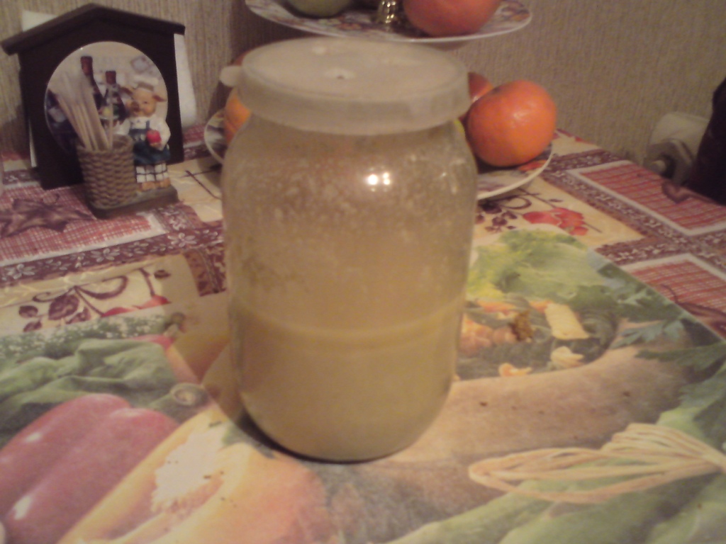 День первый:2 ст.ложки с бооольшим верхом ржаной муки,ст.ложка сахара,100гр.воды(применяю исключительно фильтрованую)Размешиваем и ставим на сутки к батарее.