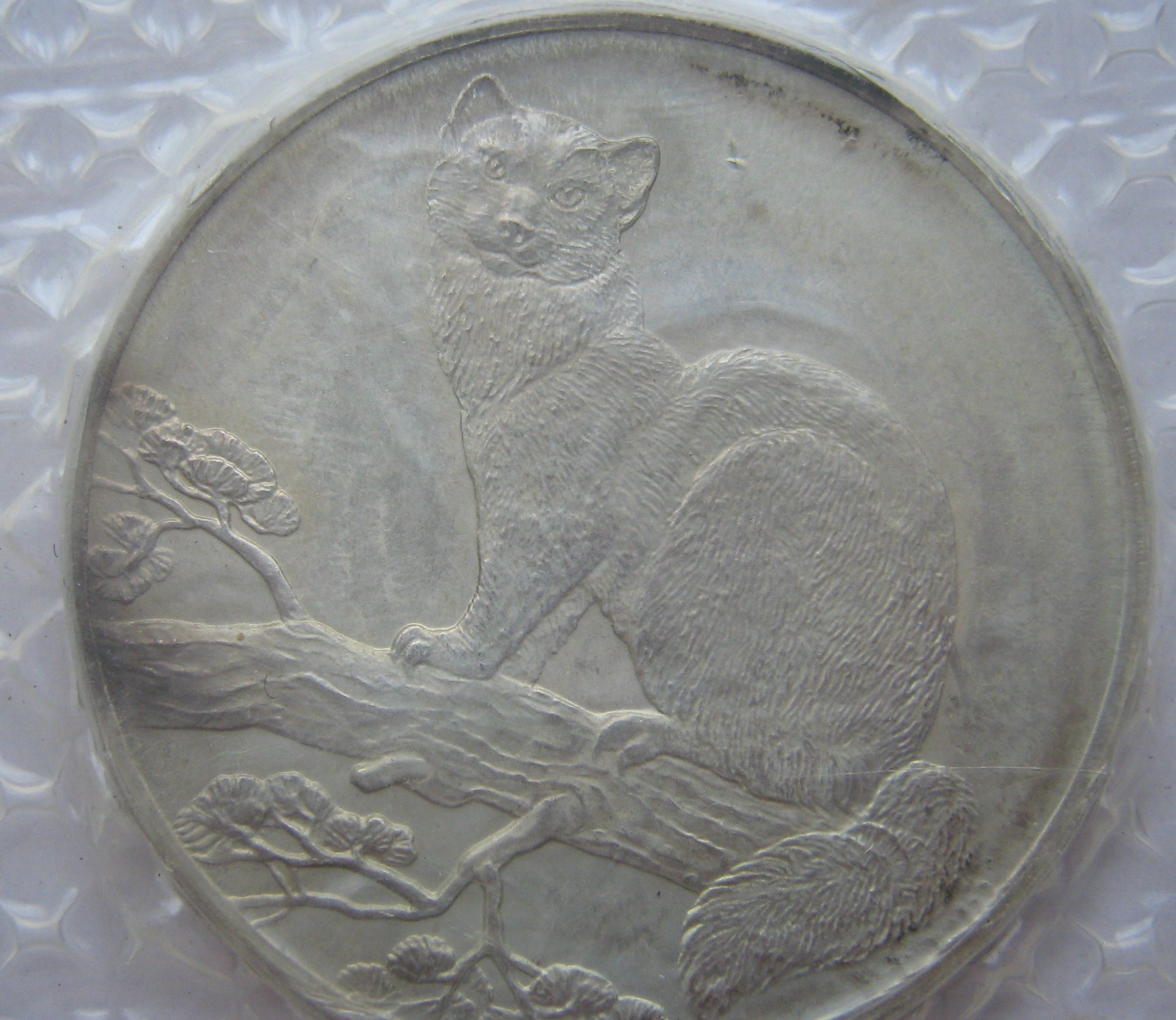 Продаю монету 3 руб. соболь-95 unc Ag925 31,1г. цена 1100 руб. Местами слегка почернела, в полиэтилене.