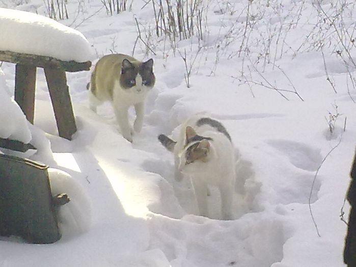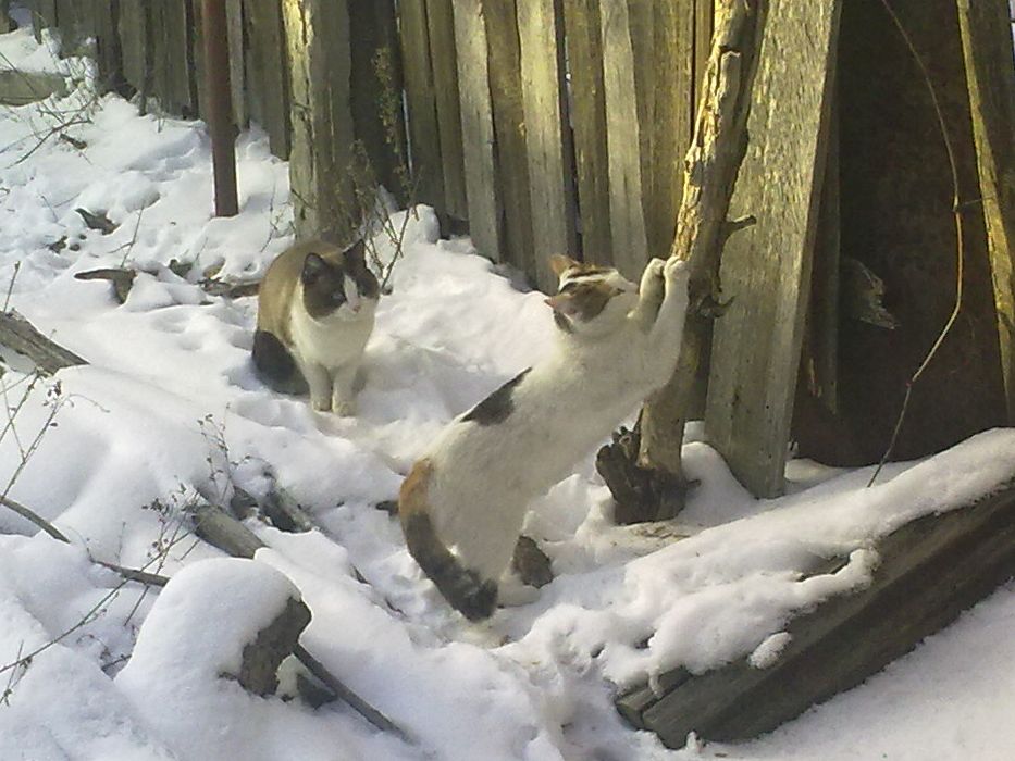 А вот скажите, знатоки кошачьих душ. Может ли кошка жить на два дома? Несколько лет назад ко мне ходил в гости Рыжий. Он то поживет, то уйдет, он был в доме тогда, когда мне было плохо. Когда же я излечился от депрессии, он пропал. Он ходил, как хотел, он мог исчезнуть на неделю, и месяц жить, почти не выходя. Лишь однажды с ним случилось что-то. Наверное, собаки загнали в лужу. Открываю дверь (снаружи, я только с работы пришел) - и тут проскакивает под ногами тощее облезлое нечто. И в дом. Как будто так и надо. Тощее, грязное, облезлое чмо. Шасть в комнату. Удивился, пригляделся - хм... наверное, Рыжий. Кто бы еще так ломился. Он и оказался. Меня не покидало ощущение, что он ночует где-то еще. Спасибо этому дому, и далее по тексту. Хотя, конечно, боевому коту везде еды найдется. Вот и сейчас - я так не думаю - а друг мой полагает, что Хряпа еще где-то ночует в тепле. Мороз, мороз! За двадцать пять! Он полагает, она ночует у кого-то в доме. Может ли такое быть? Я был бы только рад, я не кошатник.