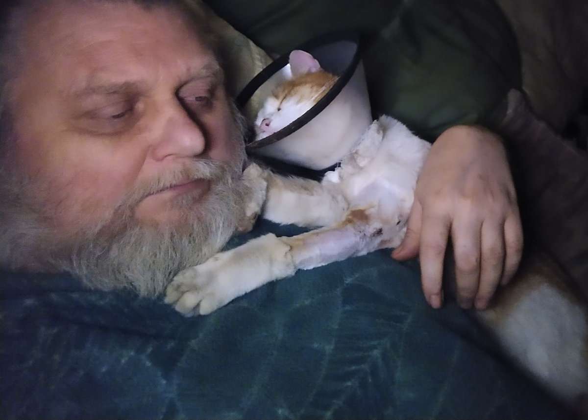 22-го вечером кот удрал. Как был — в воротнике, который он не может с себя содрать, с дренажами в левом плече. Каюсь, пр**бал. Совершенно не ожидал такой стремительной прыти к свободе. Убегал от меня по двору, а потом перебрался на крышу гаражика и спрыгнул на улицу. А с меня что взять — хромающего бомжа не догоню. Я уж почти похоронил его в душе и оплакал. Двое суток, а на улице собаки. А кот в воротнике. 24-го поздно вечером нашли соседи под забором. Мокрого, замерзшего, вяло шевелящегося. Переноска, такси, круглосуточная клиника на Огарева. Ничего смертельно опасного, множественные гематомы, три неглубоких прокуса на правом бедре — только кожу продырявили. Собаки... Вот и пригодилась первая — за неполный месяц — пенсия. Почти вся уже и ушла. Кот с третьей попытки освоил свежеприобретенный лоток. Правда, место выбрал под моим рабочим столом, ну да ладно. Четвертые сутки дома, к наружной двери даже не подходит. Нагулялся... Хотя нет, вчера подходил, когда чужие коты устроили драку на крыльце. Послушал, понюхал щелку и ушел в дом, когда все утихло. Ветеринары убеждают кастрировать. Динамика хорошая. Сегодня (а, вчера уже) возил на повторный осмотр, все идет нормально. Сняли дренажи. Обида первоначальная тоже прошла, приходит ко мне спать, прилабунивается, мурчит. Много ест, много спит. Добиваем прерванный было курс антибиотика и противовоспалительного. Чешу ему репу регулярно — сам-то он не может. И жопку вытираю. Сам-то он не может. Завтра с утреца таблеточку и суспензию, хлоргексидин и бальзам Спасатель. Война войной, а кот по расписанию.