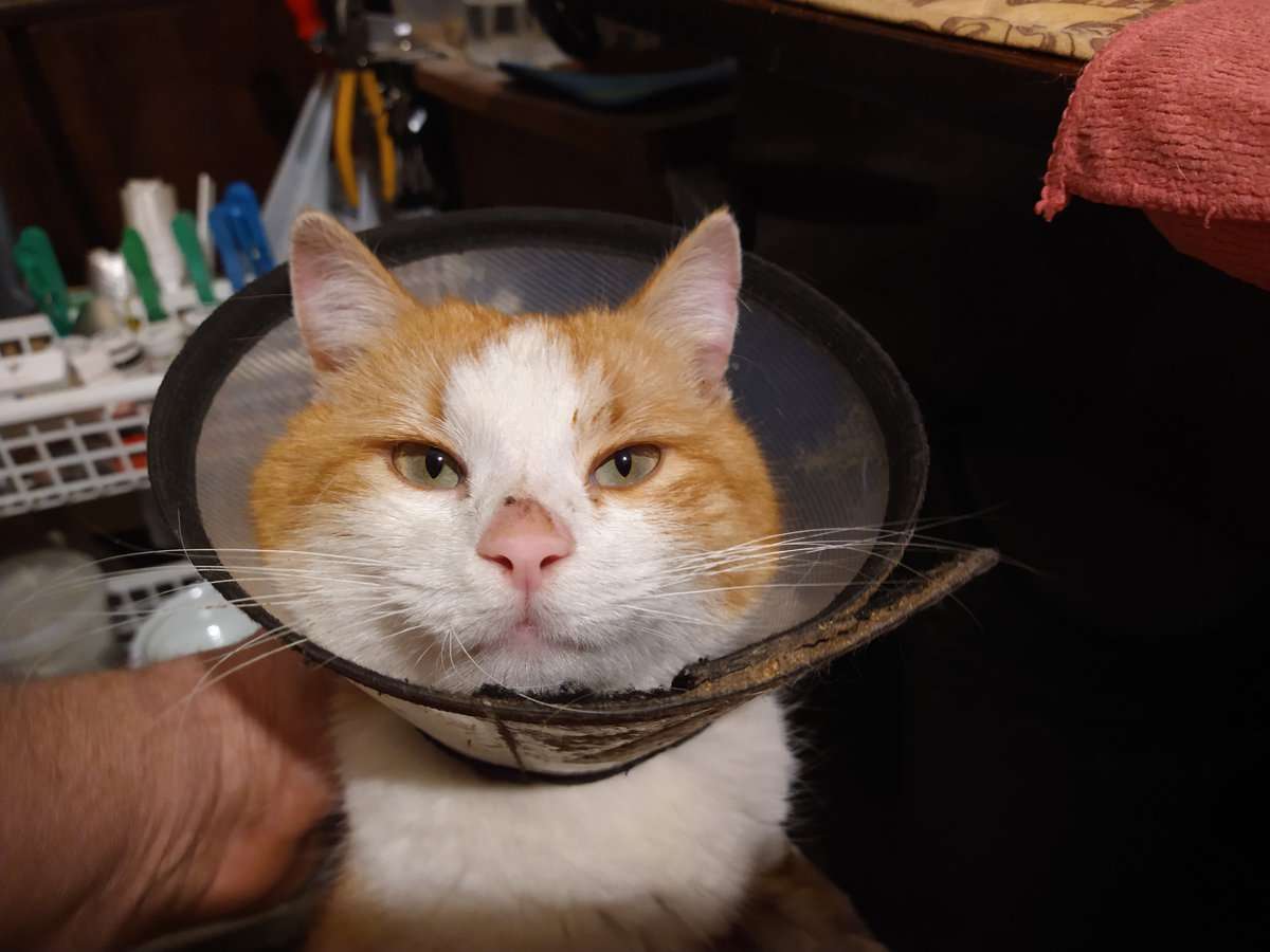 Это он в прошлом году. Жрет мой корм на крыльце, сволочь, и на меня же бурчит злобно. А я всего лишь смотрю на него через приоткрытую дверь. Я писал тут. У меня задрали мою кошку и еще одну, приблудную, приходила кормиться из той же кормушки. Это только то, что я видел. В тот же сезон пропали еще пятеро прихлебателей. А потом ко мне пришел Кот. (Это имя у него такое, кто выше не читал. Я не заморачивался.) Через полгода мне пришлось его лечить от воспаления бедра, получил в драке укол когтем. Серьезно воспалилось, операция под наркозом, сутки в стационаре, две недели дома в воротнике, чтоб не разлизывал ранки — дырки для дренажа после операции. Уже шел на поправку, но сбежал. Как был, в воротнике. Проблема в том, что на улицу он спрыгнул с забора, а пролезть под забор, в контролируемый мною лаз воротник не позволяет. То есть, вернуться самостоятельно никак. И его погрызла собака. Еще две недели в воротнике, вот же дурень такова цена свободы. Очень надеюсь, что опыт этот он не забудет. Все это время вислоухий свободно шлындал по улице, и всех бед с собаками избежал. Я ж говорю, осторожный, сволочь и недоверчивый. Долго он ко мне присматривался, пока не убедился, что братану его молочному — Коту — живется у меня зашибись. А когда осознал, начал яростно ломиться ко мне в дом. (Вы прослушали краткое содержание предыдущих серий.)