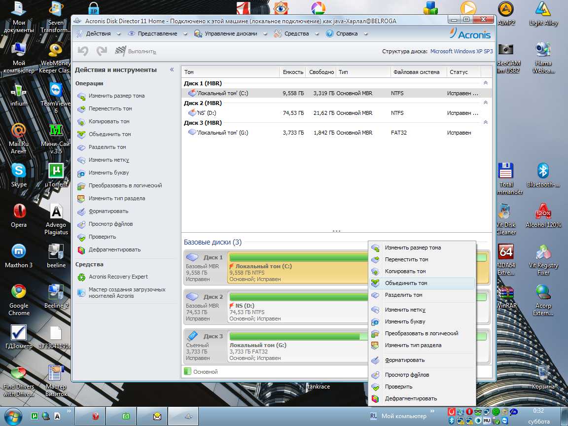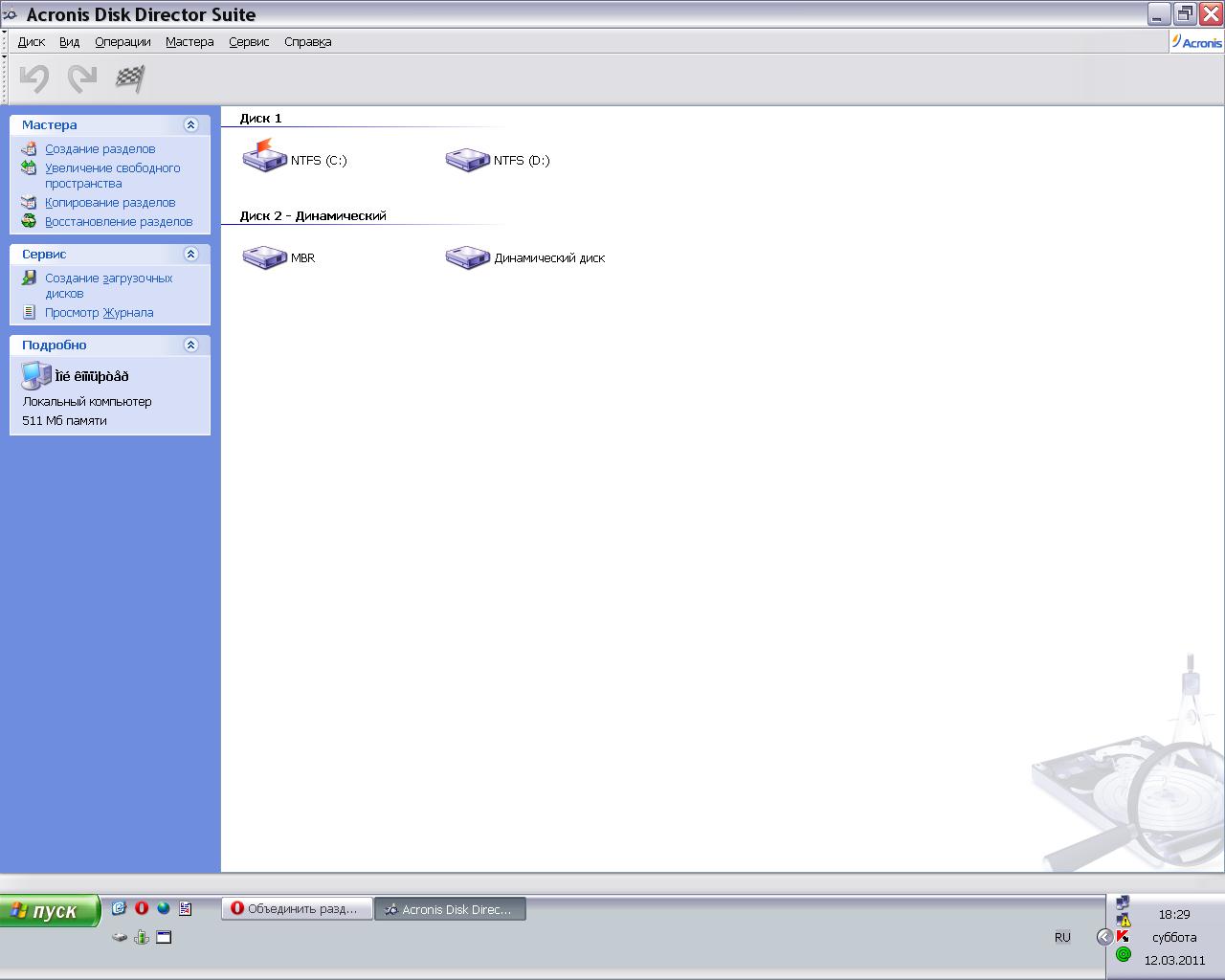 Поставил Acronis Disk Director, но не вижу что-то варианта объединения разделов: есть создание, увеличение свободного места, копирование, восстановление. А вот объединить ?????????? Что делать?