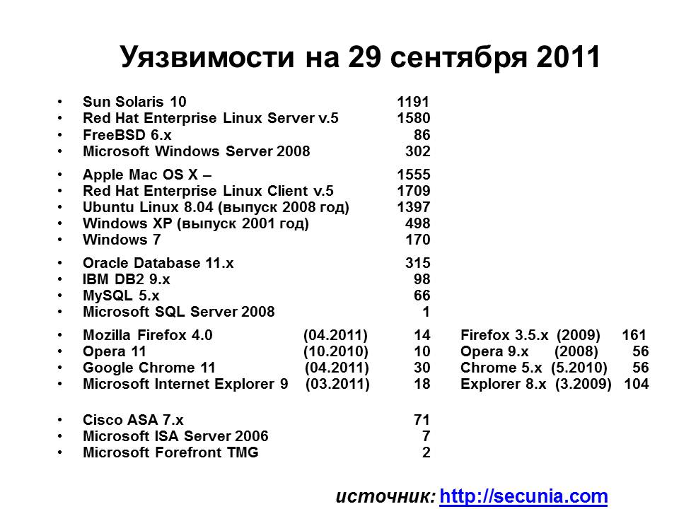 Куклачёв, Не верно. По вашей табличке самое надежное не фряха, а MS SQL Server +1 к Microsoft Security Essentials