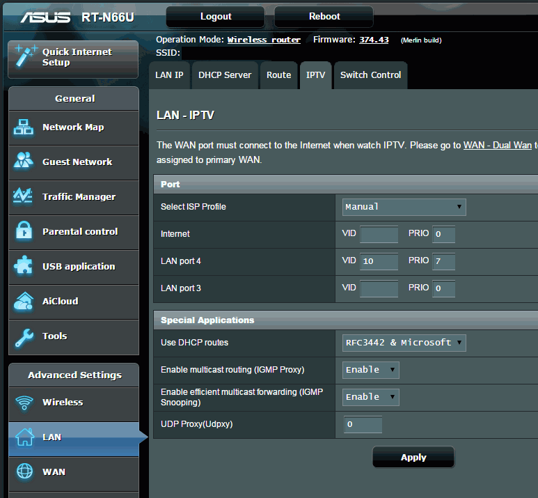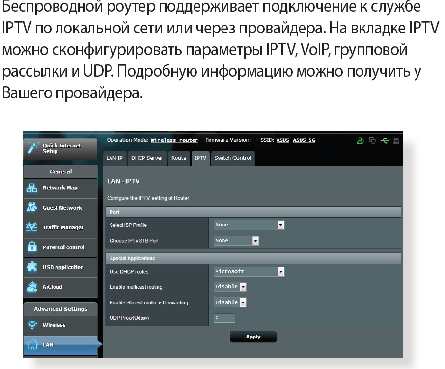 Нужен владелец такого роутера. По документации и обзорам не понятно. Вкладка IPTV есть как и у RT-N66U, а вот какие там настройки доступны, непонятно.