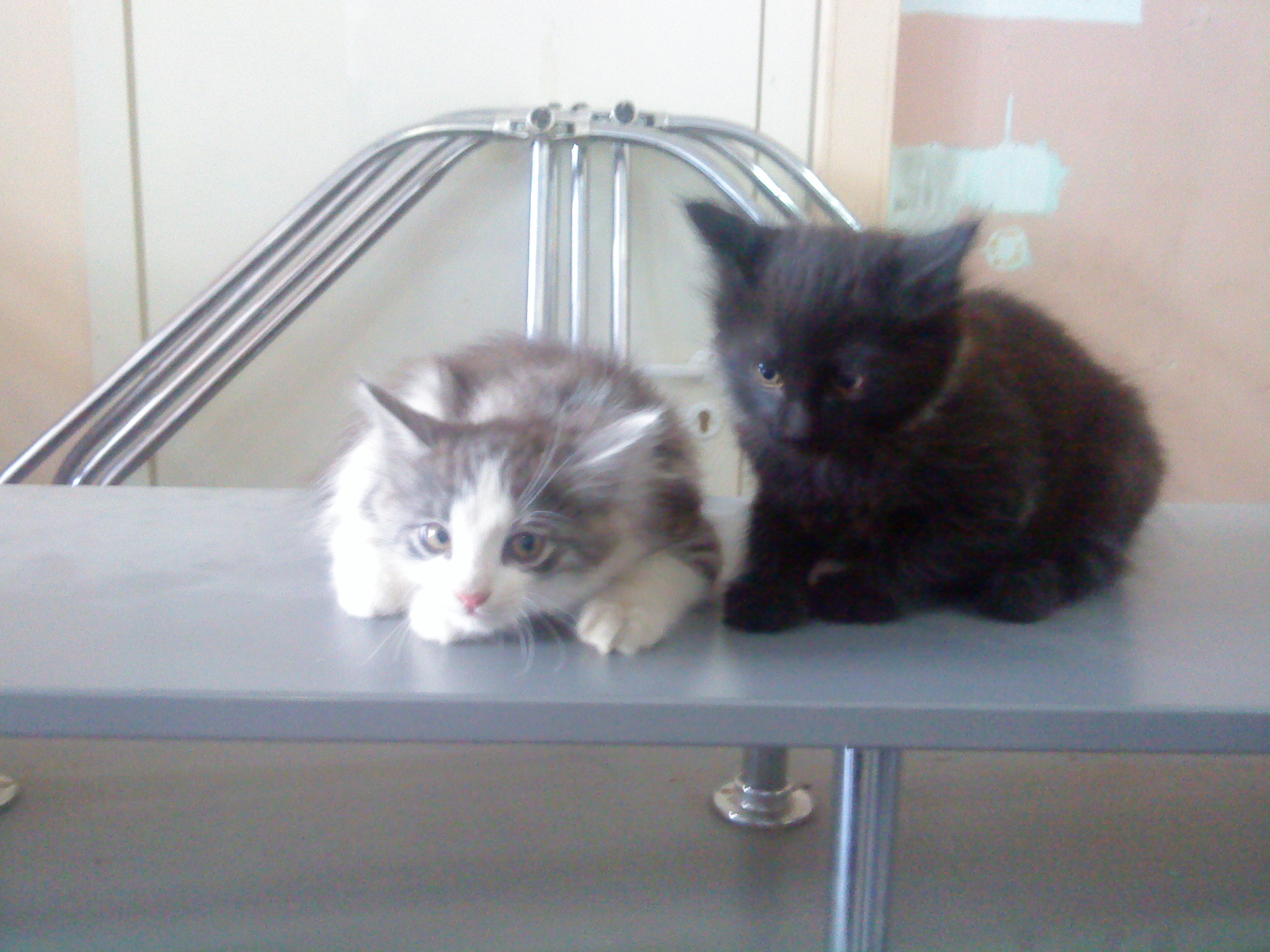 Заберите котят. Возраст примерно 1.5 месяца. Фото ниже. К каждому котенку прилагается пачка вискаса Черный-мальчик Серо-белая-девочка Адрес: Краснооктябрьский район, Ост. Юность, ул.Штеменко 43 8-906-165-3305