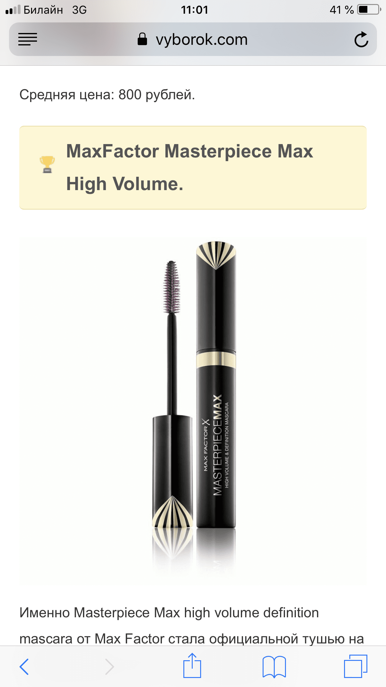 Из последнего приобретения. Красят хорошо, но Лореаль оставляет у меня отпечатки на веках, её подарила. Make up for ever, и красит хорошо и держится хорошо. До этого была Givenchy Noir Couture, отличная, мне оч понравилась. И тушь max factor masterpiece max high volume хорошо красит, держится, только смывается трудно. Самое главное, что они не оставляют у меня на веках следы и наносятся без комочков, разделяют хорошо ресницы.