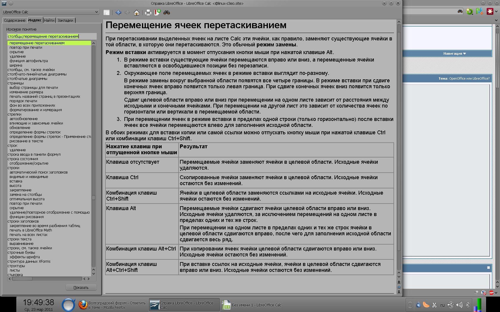 Я так понял, речь про Calc? К сожалению, я мышкой почти не пользуюсь, подсказать ничего не могу. Может вот тут что-то поможет? Но на клавиатуре лично я делаю так: 0. становлюсь на ячейку 1. жму ctrl+пробел (выделить строку) или ctrl+shift+пробел (выделить столбец). Копировать ничего не надо 2. перепрыгиваю на строку (столбец) перед которой нужно вставить 3. жму insert (специальная вставка) 4. жму alt+и (сдвинуть вниз) или alt+a (сдвинуть вправо) 5. жму enter На первый взгляд кажется, что тут много и долго, но в реальности это занимает меньше секунды. Конечно, если надо не тут же вставить, а проматывать несколько экранов -- то получается подольше. Думаю, заслуги собственно MO тут минимальны. Но ребятам из вайна -- пять с плюсом за старание. А вообще, это я так неуклюже пытался пошутить в ответ на его шутку, не обращай внимание.