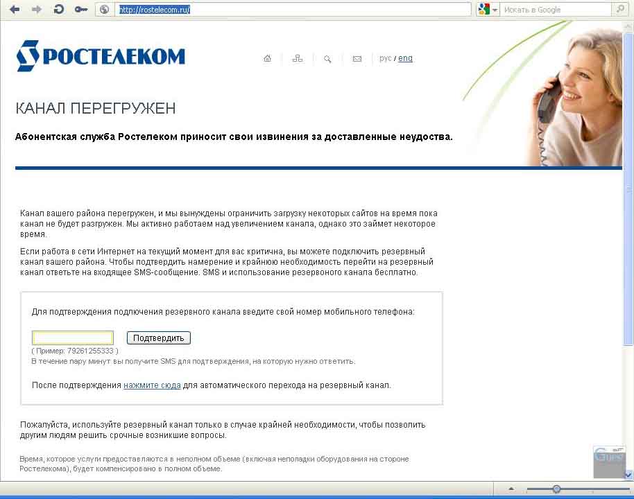 Выявлены случаи мошенничества с использованием официального сайта ОАО "Ростелеком" (см. скриншот). Абонентам необходимо знать: 1) ОАО «Ростелеком» не оказывает услуг по активации резервных каналов посредством отправления SMS сообщений. 2) В случае получения подобного предложения необходимо: Проверить компьютер на наличие вредоносного ПО и удалить его.