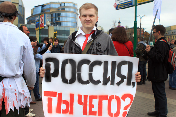 Заинтересовало это мероприятие, пытаюсь понять. [ame="http://www.youtube.com/watch?v=hprkqCo2ryo&feature=player_embedded"]Видео тут[/ame] По материалам novayagazeta.ru: "...Первого мая около 400 человек прошли от станции метро «Трубная» до «Чистых прудов», скандируя: «Лучше бы работать шли! Система, че такая нервная? Нам нужна другая погода! Чунга-Чанга! Але-не але! И пр. абсурдные лозунги». Улицы, по которым двигалась разноцветная колонна с плакатами, были оцеплены полицией. Несколько раз «монстрантам» пришлось пройти через рамки металлоискателей. В результате в толпе тут же появился новый лозунг - «Выйдите за рамки!». Акция прошла очень весело и громко. Прохожие улыбались, старушки крестились. У памятника Грибоедову «монстранты» начали скандировать сначала: «Горе от ума», потом - «Боря от ума!», потом - «Боря, а тумак». Это все могло бы продолжаться бесконечно, если бы полицейские не попросили всех разойтись. «Монстрация» - это абсурдное шествие с сумасшедшими лозунгами и призывами. Несколько лет она проходит 1 мая в Новосибирске и Омске, теперь и в Москве. Ее автор Артем Лоскутов недавно получил за нее премию «Инновация»..." Читать статью