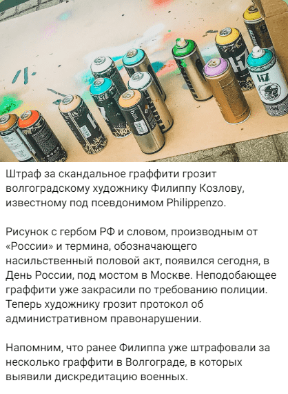Окей, формально чел совершил деяние, которое попадает под административный кодекс. Если претензия исключительно в этом, у меня особенных вопросов нет. Но, думается мне, вопросы к нему не из-за факта совершения рисунка, а из-за содержания граффити.