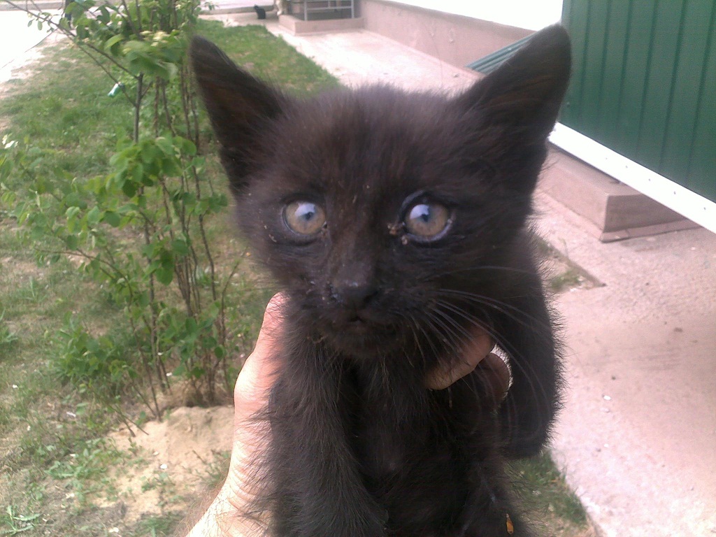 Всем привет! Буквально час назад мы с женой пошли прогуляться - подышать немного воздухом... Проходя мимо соседнего дома, в кустах услышали жалобный кошачий плачь... И увидели такую картину: две взрослых вороны напали на беззащитного котенка... Быстро подбежали, отогнали этих "коршунов" и, недолго посовещавшись, решили отнести его к нам во двор. Принесли, жена вынесла молоко и он буквально набросился на миску, стал жадно пить, не обращая ни на кого внимания (даже на подошедшего кота- "хозяина" двора). Стало его очень жалко... Занесли домой... Сейчас сидит на балконе, в ящике- дремлет. Себе оставить не можем- так как: 1. Жена беременна, 9 месяц- боится всякой заразы... 2. У нас уже есть кошка- породистая британка (тоже не хотим что бы она заразилась блохами, или еще чем- нибудь похуже.) Выбросить на улицу у нас не поднимица рука... Кот (?) чисто черный. Извинюсь за качество фото- фотографировал на телефон. Телефон для связи: 89880560001 Иван. Кировский район. Если кто- нибудь решить забрать это МЧЧ - сам привезу в любой район города, помогу деньгами на корм на первое время.