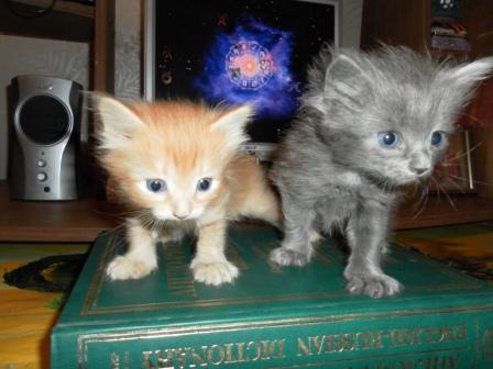 Отдам в добрые руки двух прелестных котят!!!Один полностью рыжий(кот) и полностью серый(кошечка),пушистые!!!Родились 28апреля2011г, котята ждут своих новых хозяев!!!