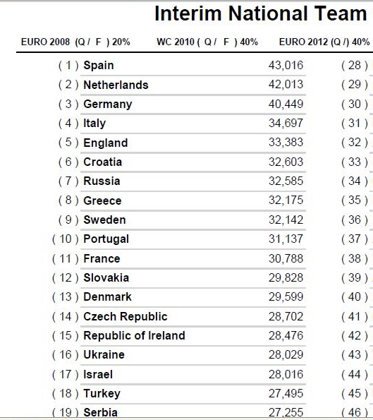 Рейтинг сборных УЕФА по состоянию на 8.06.2011 http://www.uefa.com/MultimediaFiles/Download/competitions/General/01/64/07/71/1640771_DOWNLOAD.pdf
