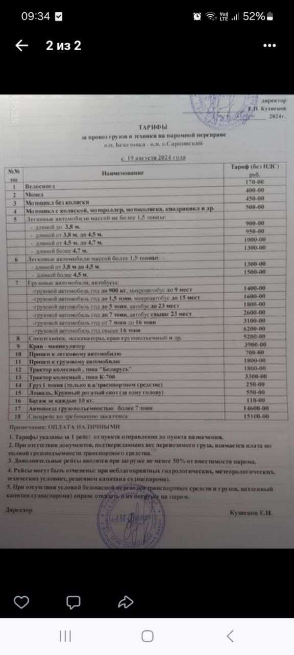Все норм. Ср, пт, сб от Бекетовки в 7-20, 11-00, 14-00, 17-00, с Сарпинского в 8-00, 12-00, 15-00, 18-00 Вс от Бекетовки в 9-00, 11-00, 14-00, 17-00, с Сарпинского в 10, 12, 15, 18 Стоиомть легк.авто от 700 до 1200р в зависимости от длины и массы Судовой тел. +7-903-371-97-45