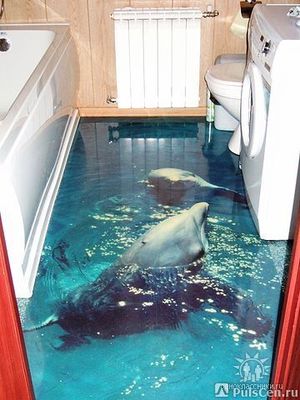 Я так понимаю ни какого 3Д там нет... Простой, наливной пол, на который наложено что-то напечатанное а сверху залито специальным полимером. Или вариант - полностью залито полимоером с какими либо вкраплениями