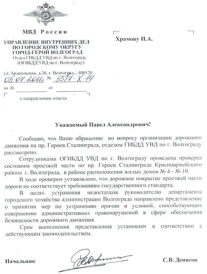 Кстати, вот еще один ответ ГИБДД, на очередной "донос"... Странно, почему-то почти месяц шло. Только сегодня получил. Кстати, кто знает, сколько там дней дается на устранение? - уже 30 прошло.