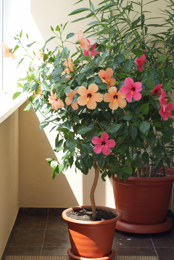 Продаю гибискус с разными цветами. Большой, пушистый. Высота с горшком полтора метра.