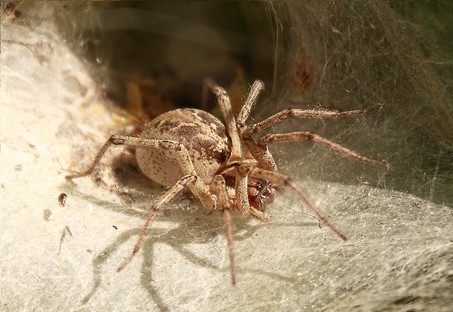 Википедия считает, что тарантул отечественный не опасен (если конечно соответствующей алергии нет). А вот сольпуги (фаланги) говорят очень больно кусются (хотя и не пауки и не ядовиты), да ещё и агресивны, и их правда полно на дачах.