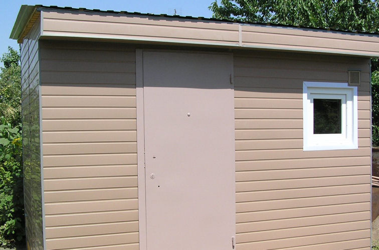 У меня сосед три года назад обшил дачу ..... пластиковой вагонкой. Материалы в 2 раза дешевле (цвета на выбор, у сайдинга очень дорогие профили, если считать без них, то только "панели" реальную стоимость не дадут). Монтаж проще: - не снизу вверх, а сверху вниз - не шурупами, а оцинкованными гвоздиками - можно прибивать, а не "подвешивать" (сайдинг нельзя прижимать к обрешетке). Моется лучше, т.к. глянец, а не шероховатая поверхность. Это так, к размышлению... Я посмотрел на его творение и тоже обшил свой хозблок вагонкой (фотография обрезана, т.к. еще неполная готовность). Обшивал в начале июля, когда столбик термометра не повышался более, чем 30 градусов - максимальную жару позже вагонка выдержала без проблем.