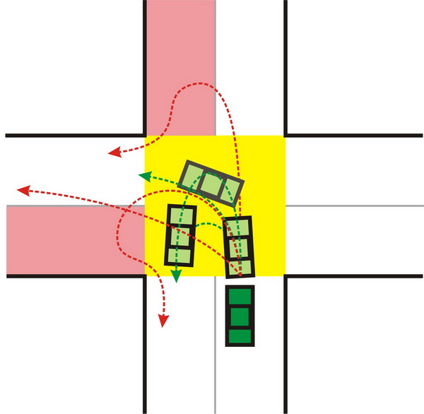 Гарна дивчина, по вашей ссылке: может, конечно я чего-то не понимаю, но по моему, это полный бред: во-первых, какое движение по "пересекаемой дороге"??? Как правило, есть светофор, и когда вы разворачиваетесь, машинам на "пересекаемой дороге" горит красный, т.е. они никуда не едут. А если там нет светофора, и вы лезете на такую дорогу, так траектория 2 ещё более опасна, во-первых, потому что вы тупо будет больше времени находится на перекрёстке и уступать придётся не только тем, кто едет слева, но ещё и тем, кто едет справа! (это не считая тех, кто едет навстречу!). Т.е. чтобы выполнить такой манёвр вам нужен абсолютно пустой перекрёсток! Короче, чушь это всё и бурные фантазии аффтора...