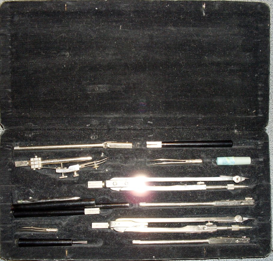 Ух ты, это же чешская готовальня. На порядок лучшего качества, чем сейчас производятся. У меня где-то была, но два больших циркуля потерял из нее. Жаль не успел