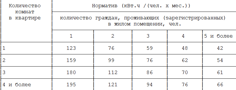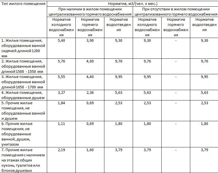 Скажите, какие текущие нормативы в кубометрах по потреблению холодной и горячей воды на человека? И электричества для варианта с электроплитой? В доме газа нет. Сейчас цена кубометра что по счётчику, что по нормативу одинаковая?