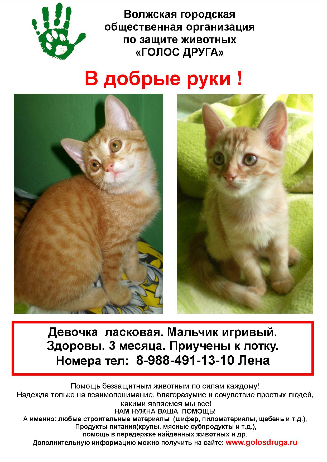 Отдам. Котята. 2 месяца. Рыжие. Мальчик и девочка. Приучены к лотку. 8-988-491-13-10 Лена Были брошены в 2-х недельном возрасте, выкормлены искусственно. На фото: 2-котят, мальчик справа. 1-котенок(2-е фото) девочка.