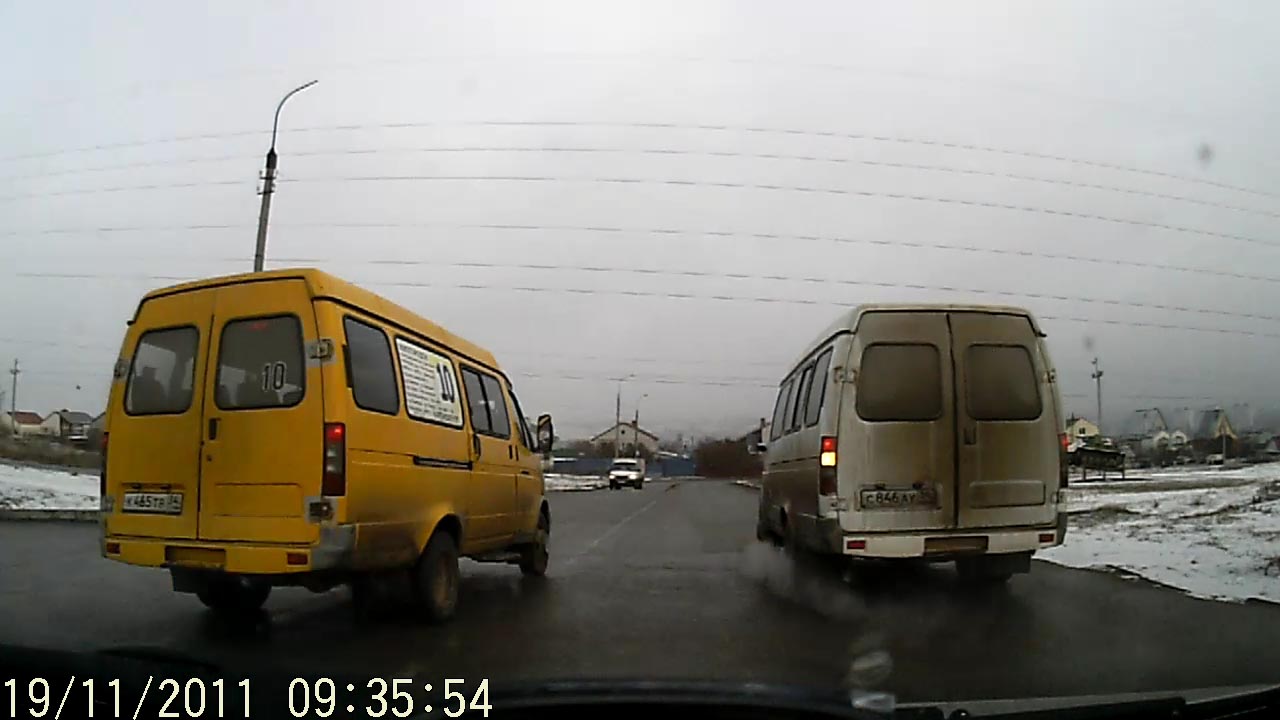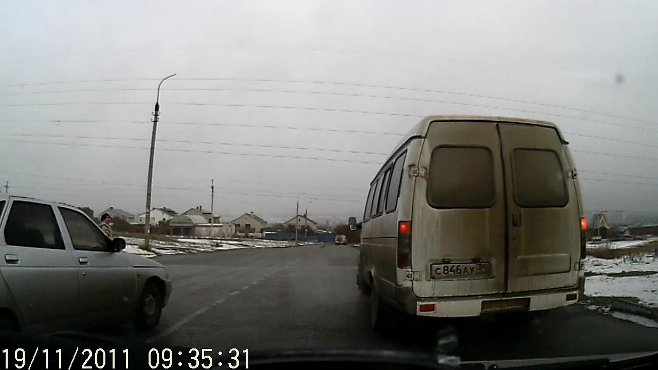 Я поворачиваю налево. Поворотник включен заранее. В зеркале заднего вида вижу летящего по всречке Маршрутка с846ау видит бегущие 10руб и останавливается на перекрестке... на десятке о422рр едет по встречке и чуть не сбивает пешехода, который сломя голову бежит к маршрутке...