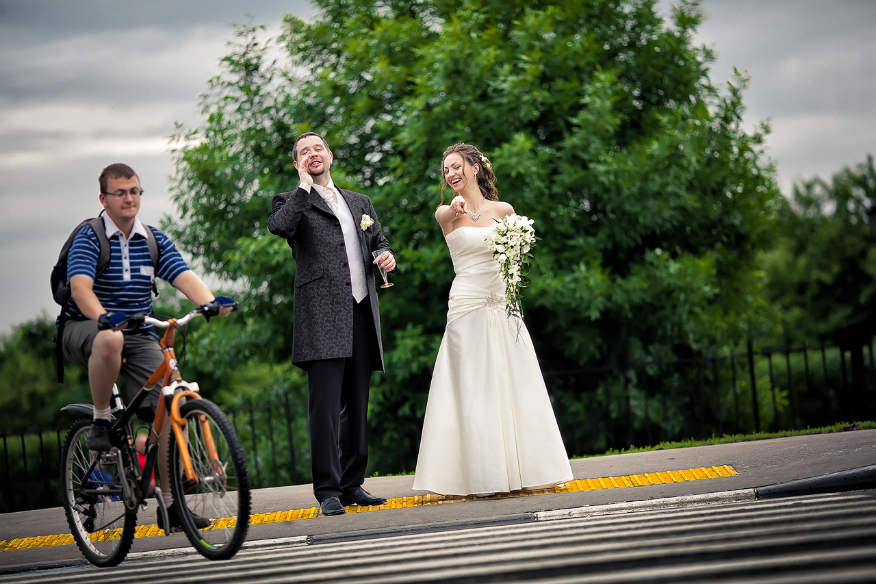 Какая хорошая девочка-модель. И что же вышло? А вышли хорррррррррррррошие фото, но жанр не совсем свадебный, а скорее ...Как хороша была кровать, Она ни разу не скрипела. В квартале красных фонарей, Обоев красных было дело. Сидела девушка одна, На койке. И ждала клиента. Одета в белое. И тут Фотограф отловил моменты. Вот, что получается, когда увлекаешься антуражем. NekS, а вообще, безотносительно к свадьбе, мне нравятся фото. Ну, так просто нравятся. Vladfoto, взгляды у пары странные друг на друга. Невеста - угодливо, жених - снисходительно. Платье красивое. Было бы еще креативнее прицепить не "джаст меррид", а стульчак от унитаза. ПОшло и то, и другое. Roman-web, прямо колдунья у вас вышла. Хорошо сделано. Не все понравилось, а в целом. steppp, и юмор, и креатив, и "несоединяемое соединение" - очень понравился снимок. Первое - просто прекрасно.