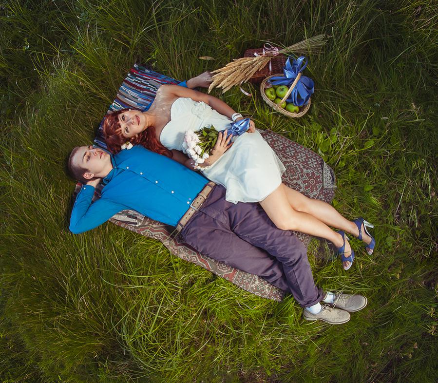 Почему то ощущение, что вся эта конструкция из тряпочки и молодоженов висит над травой. (особенно слева)