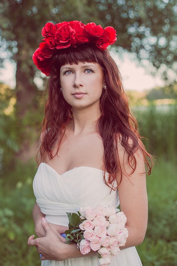 alex_bubble, 1. "И пошли они вместе по дороге жизни". Опс, а пошла она одна. Рельсы не работают, а точнее наоброт. Рельсы сами по себе картинку не красят, а в данном случае их присутствие вызывают недоумение. 2. Фиг с ним эффектом вшопленности, но свет на лице невесты это полный алес. Позы (опять таки из за рельс) натужные. 3. Свет на лице - плохо, полица в грязной тени, лицо от этого исказилось. Выражение лица и взгляд не в кассу. Рельсы опять так. Локация неуместная. 4. Плоский свет. Статичные, вымученные позы, и он заснят на полуслове (выглядит так). Плоский свет сам по себе не хорош и не плох, просто в статичной позировке можно и заморочится с объемным светом, тем более натура позволяет. 5. Голая спина на заднем плане, жених невесту загородил напроч (а это больше ее праздник). Из пяти этот кадр более мене похож на живой. Остальное как из пальца вымученное. ---------- Сообщение добавлено 01.08.2012 14:04 ---------- Tanya Fake, если приглушить красные розы будет лучше.