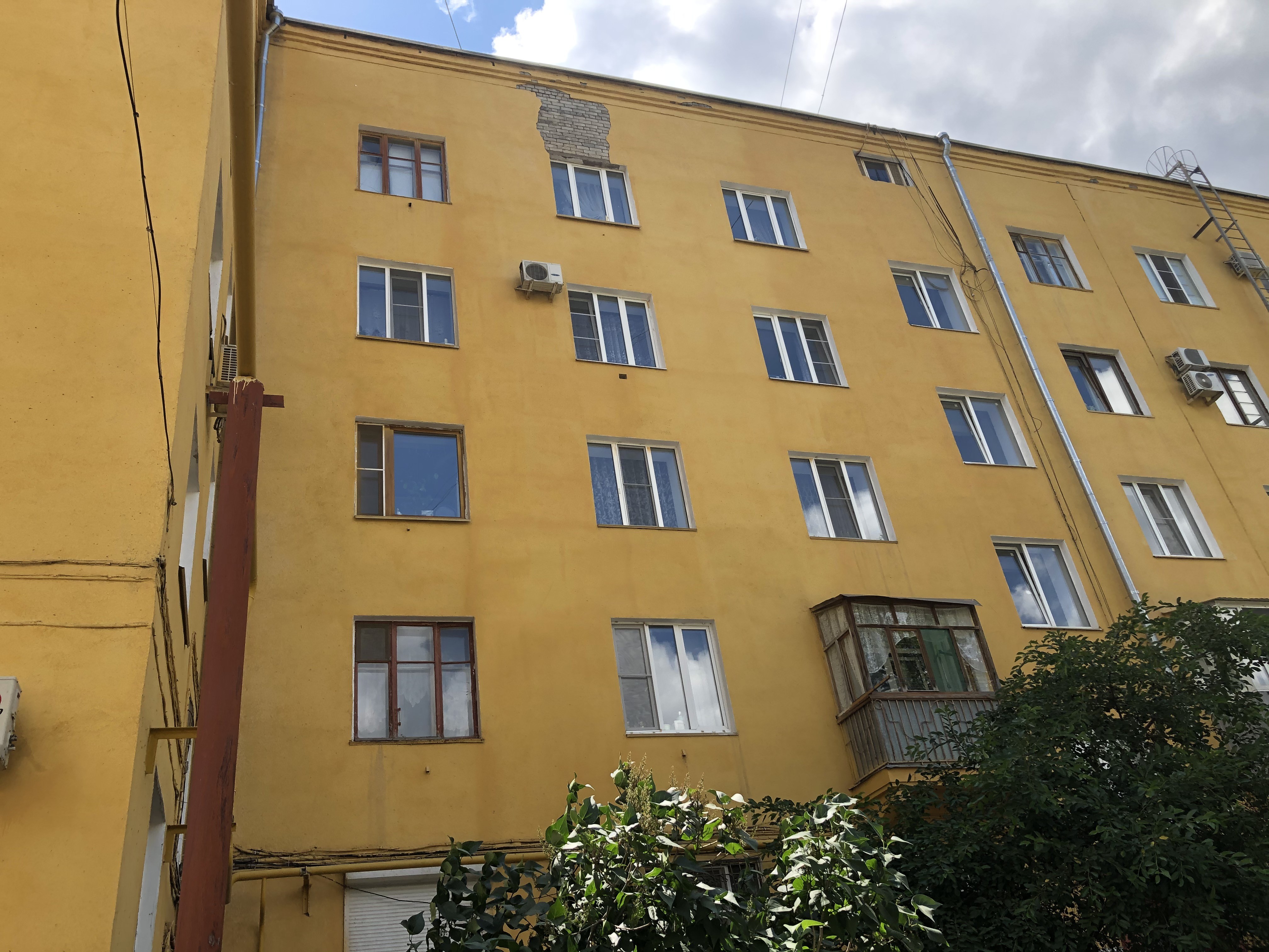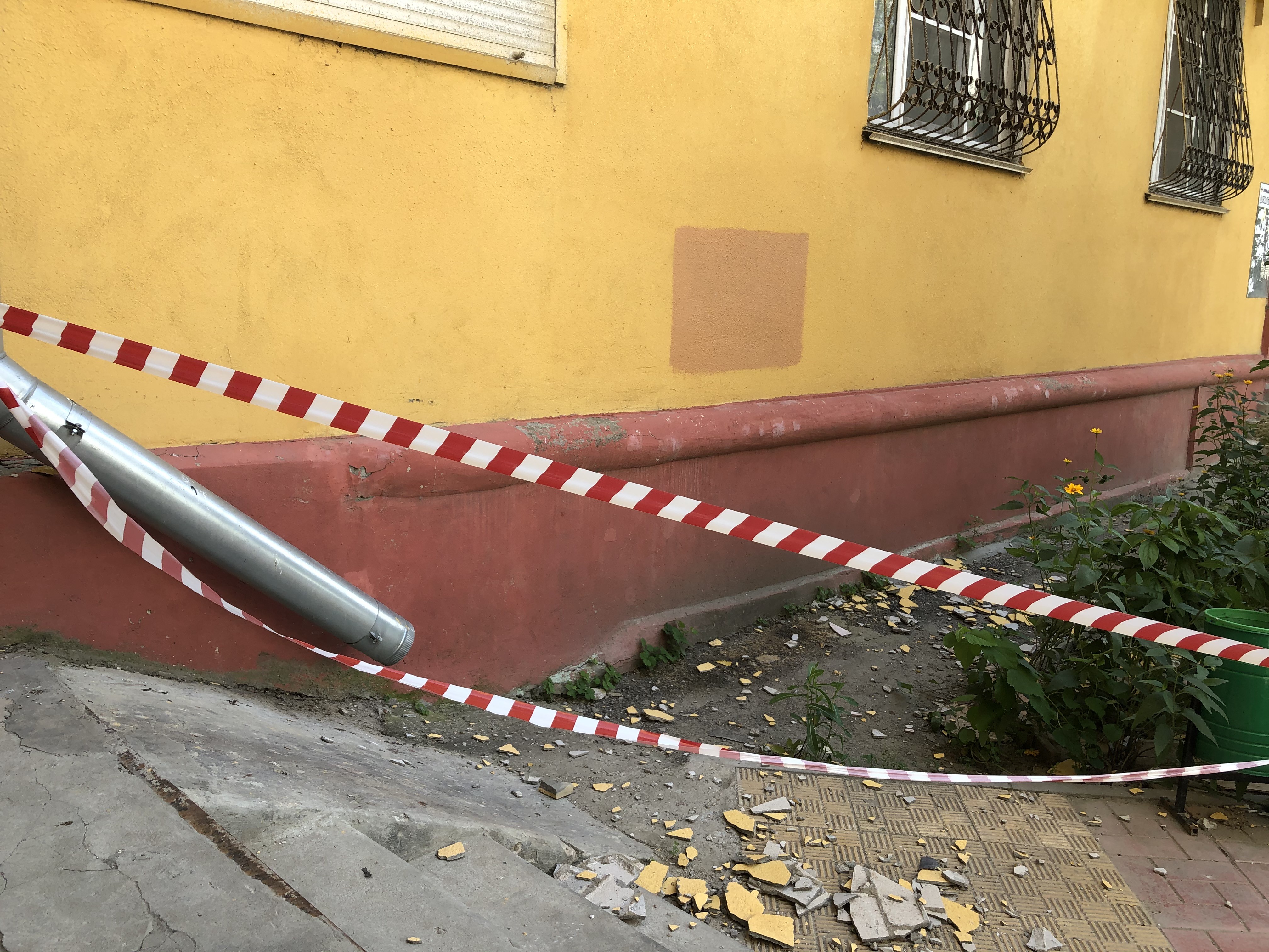 В итоге на днях кап.ремонт отклеился. Прямо пластом все упало, с сеточкой и краской. Конкретно это место штукатурили поздней осенью 2016: УК оградила ленточками: На лавочке (что справа, за мусоркой, не видно на фото) как раз сидел знакомый, говорит, если бы сидел на левом краю, убило бы. Жильцы нескольких квартир пятого этажа потыкали из окон штукатурку шваброй, там все ходуном ходит, висит на соплях. А с другой стороны балкон отклеился. Все то, что снизу налепили, прямо вот так буквой П и упало. Тоже с уголками, типа "арматурой" и сеточками. Там ленточек вешать не стали, видимо, считают, что усыпанный осколками цемента и штукатурки тротуар и так предупреждает. В принципе, правы, многие пешеходы видя это держатся от стен подальше.