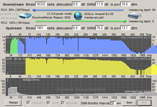 Господа, а есть здесь действительно знатоки adsl-технологии? Поглядите на скриншот и скажите - зачем и почему вот этот провал наверху? Что в этом диапазоне может быть такого?