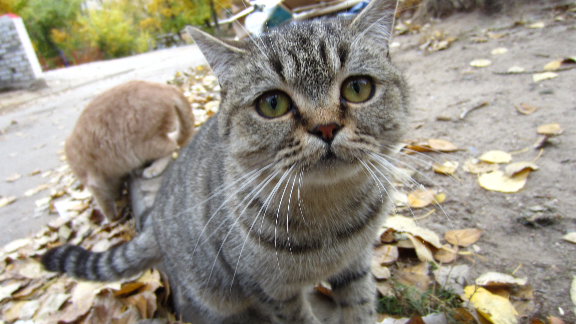 Встретила сегодня на улице такое чудо, дедушка. кормивший кошек говорит живет довольно давно. Кошка на вид вполне здорова и активна, беременная. Фотки сделала, но мордочку все равно не удалось нормально зафиксировать, глазки у кошки желтые, очень круглые ,как плошки, носик сильно вдавлен ,как у перса. Скоро зима, вот вот должны родиться котят. Посмотрите на это чудо, может кому приглянется киса с приданным. На счет породности не уверена, что за порода. может смесь, но киса явно не чисто дворовых кровей и возможна была домашняя, ласковая
