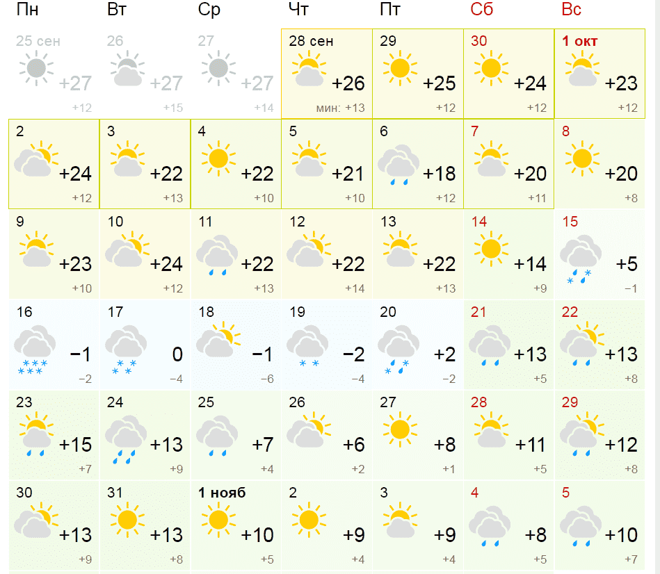 Прогноз на октябрь Кто что хочет, то и прогнозирует... https://v1.ru/text/gorod/2023/09/28/72755270/ Жителям Волгограда обещают снегопады и заморозки до —6 °C уже в ближайшие две недели. Причем одни прогнозы уверяют: на город идет ранняя зима, а другие говорят о затяжном бабьем лете. По прогнозу Gismeteo, с 15 октября в Волгограде ожидается неделя заморозков. Температура воздуха опустится до —6 °C, а снег или дождь будут идти каждый день. Спустя 7 дней температура поднимется до средних отметок в +10... +13 °C. Прогноз от сервиса Yandex морозов и снега в октябре не обещает. По данным синоптиков, температура в течение всего месяца будет не ниже 0 °C. В то же время резкий спад — с +22 °C до +15 °C и ниже — также ожидается как раз на 15 октября. Синоптики Mail.ru уверены, что ощутимого похолодания в октябре вообще не будет. А вот дожди обещают. Метеорологи предсказывают температуру до +24 °C в конце месяца. При этом эксперты Волгоградского ЦГМС уверены — октябрь будет совершенно обычным. Осадков ожидается около и больше нормы, а температурный фон будет колебаться в пределах среднемесячных значений. p.s. зато аккувезар говорит о похолодании вообще с 6 октября p.p.s. и насчет яндекса v1 соврали. они говорят, что с 15 октября будет +6 днем Зато в другом месте обещают отсутствие отопления примерно до конца октября... https://v1.ru/text/gorod/2023/09/27/72750611/ Специалисты Волгоградского ЦГМС дали первый прогноз, когда в Волгограде начнется отопительный сезон. По предварительным оценкам синоптиков, запуска тепла в домах и социальных учреждениях можно не ждать еще примерно месяц. ... Понижение температуры возможно только в третьей декаде месяца, после 20 октября. Тогда ожидаются первые ночные заморозки и понижение дневной температуры. В итоге понизится и среднесуточная — до 8–10 градусов.