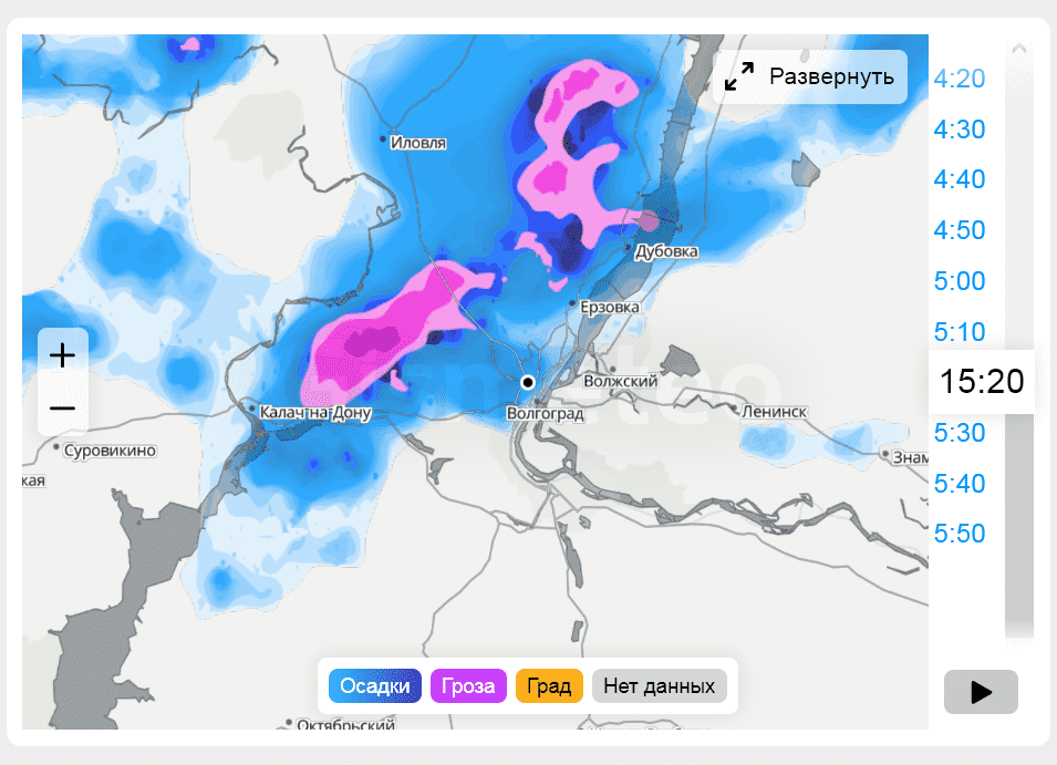 На бакинской был прям дождь. Минут 30. во первых надо понимать специфику радарных данных. во вторых я несколько раз пробовал "предсказать", когда вот прямо 100% идет красная грозовая засветка, точно уже будет. Ан нет - так же или пропадает или уходит в сторону. Поэтому осадки так точно и не прогнозируются.