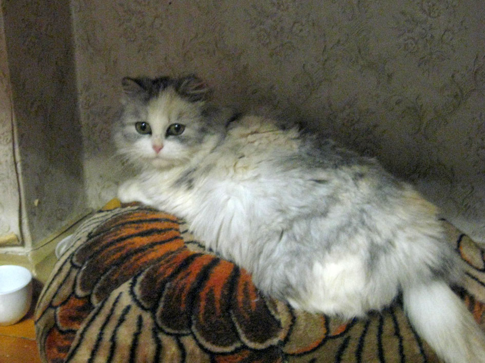 Ну в общем нам не перезвонили, а я сама номер не сохранила и он был вытеснен новыми звонками... Кошка так и живет у нас - ограничение сняли, теперь в ее распоряжении комната детей. Она по-прежнему послушная и неприхотливая, аккуратная и терпеливая. Но мой муж по-прежнему не переносит кошек на дух((( скандалы частые, грозит привести домой кучу бомжей под предлогом - им тоже негде жить. И еще, у нас она уже месяц, практически сразу мы были в ветеринарке на ул. Советской, где после прощупывания нам сказали, что она вполне серьезно беременна... Могли они ошибиться? Потому что кошка не рожает и выглядит по-прежнему "возможно беременной" (ну не бомбовозом точно) Какие опасности есть в этой ситуации? Надо срочно бежать на узи или можно подождать еще пару недель? У меня сейчас некоторые финансовые затруднения, денег жду ближе к концу месяца, пока на нее могу тратить только рассчитанные на корм.