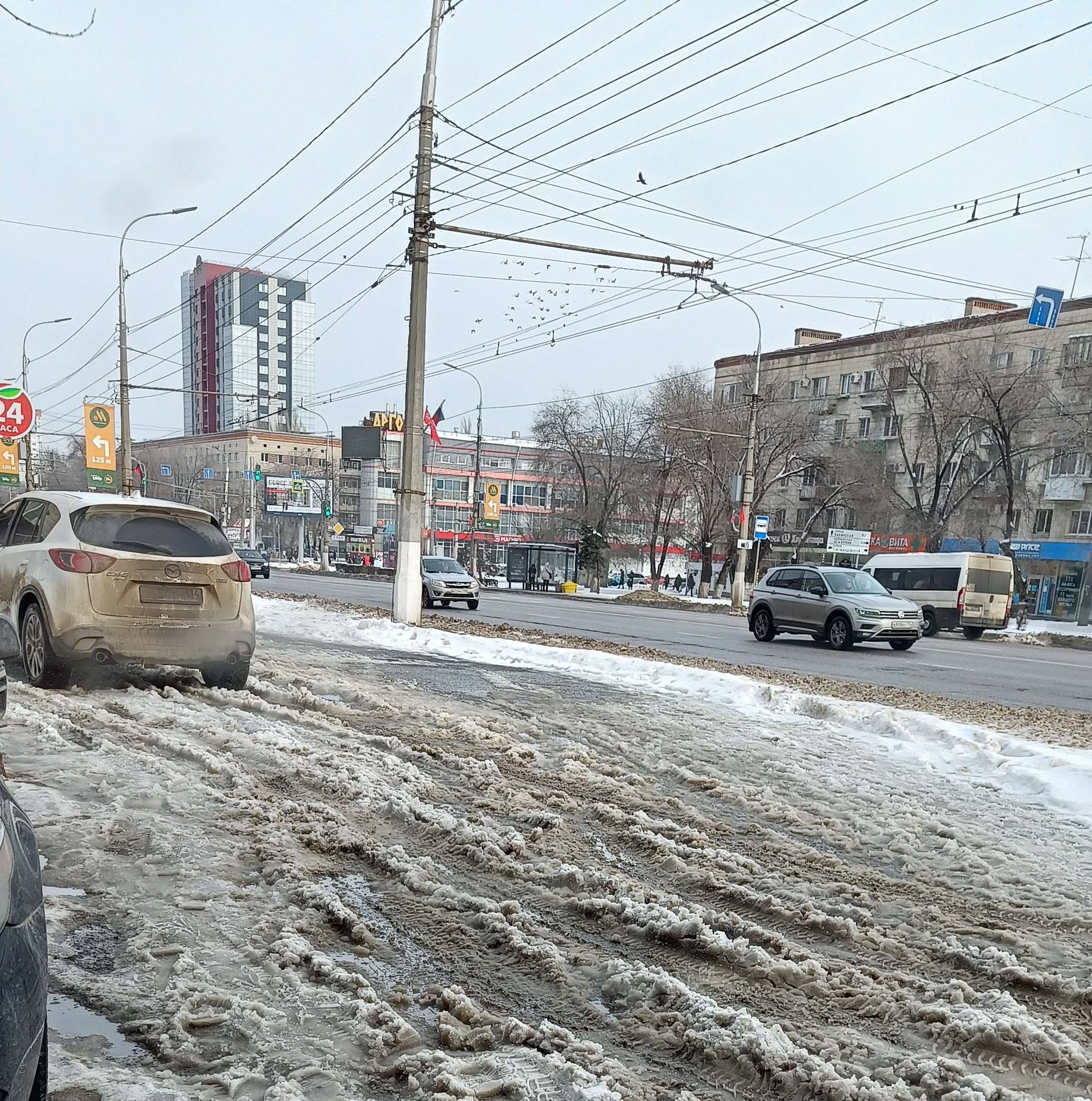 Неожиданная зима на дорогах Волгограда