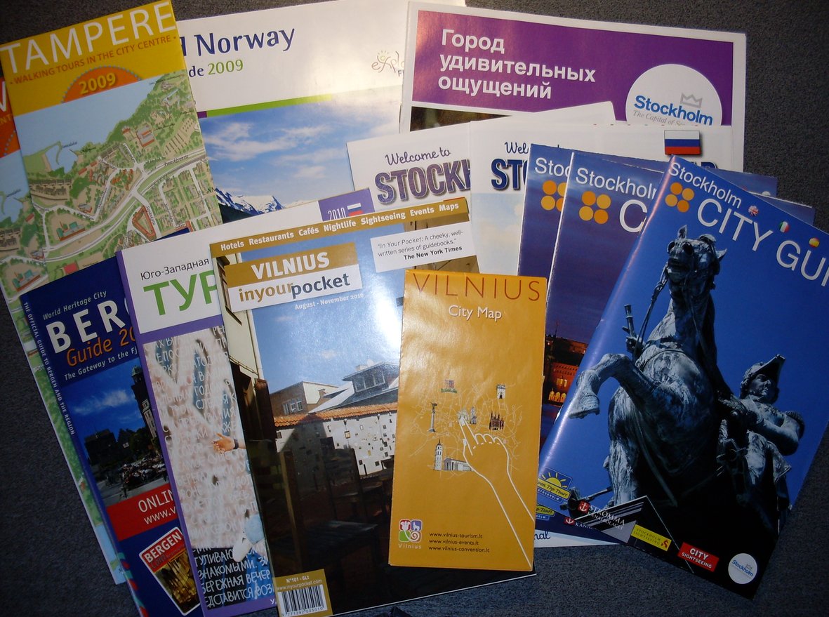 Рекламно-информационную печатную продукцию по Скандинавии (карты, брошюры, путеводители) на русском и английском языках. Самовывоз из центра.