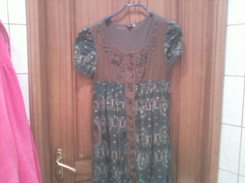 Размер 48 (размер европейский, явно больше нашего российского, при любых раскладах "висит" даже на женщине с размером 46 + пузо 9 месяца), новое. Фото будет вечером.