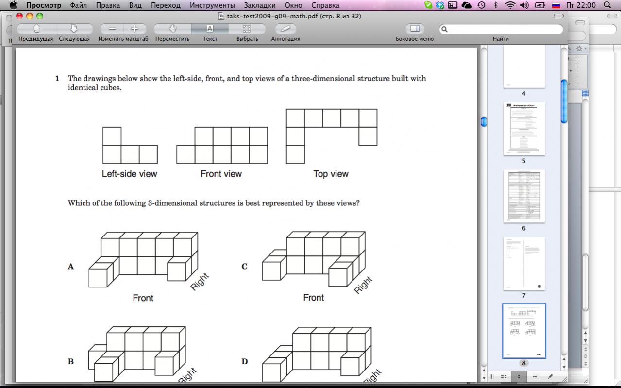 rr, я посмотрела американские тесты, в частности по математике за 9 класс http://www.tea.state.tx.us/index3.aspx?id=3839&menu_id=793 меня поразил уровень заданий. Например, задача 38 - дана стоимость покупки без налога, нужно узнать полную стоимость, если налог 8%, или задание 39 - даны два прямоугольника, нужно используя математическую линейку выбрать подходящий коэффициент для масштабирования одного прямоугольника в другой. По-моему, это позор какой-то для девятиклассника. У меня для примера ребенок (7 лет) вчера 15 минут пытался по учебнику за 2 класс построить замкнутую ломаную с тремя звеньями, проходящую через 4 заданых (типа вершин квадрата) точки. Если бы решила сама - папа бы отдал айфон. Не смогла и со словами: "Ни телефона, ни мозгов" ушла... рашать другие задачи По-моему, надо их приучать, что самый крутой fun - это когда до истины доходишь, а не просто в школу пришел.