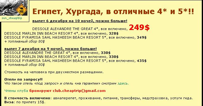 Собственно, интересует вопрос. Отправляясь в Египет по туристической путевке, лучше ее брать в Волгораде и вылетать из Волгограда, или же лучше брать в Москве с отправкой из Москвы. "Лучше" - подразумевается - дешевле. Просканировал сайты турфирм, прикинул, вроде как даже с учетом дороги до Москвы, гораздо дешевле получается брать путевку там, нежели у нас в Волгограде. Или я ошибаюсь?