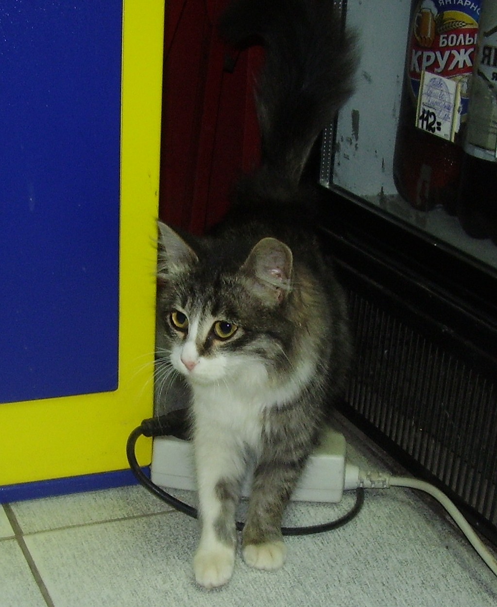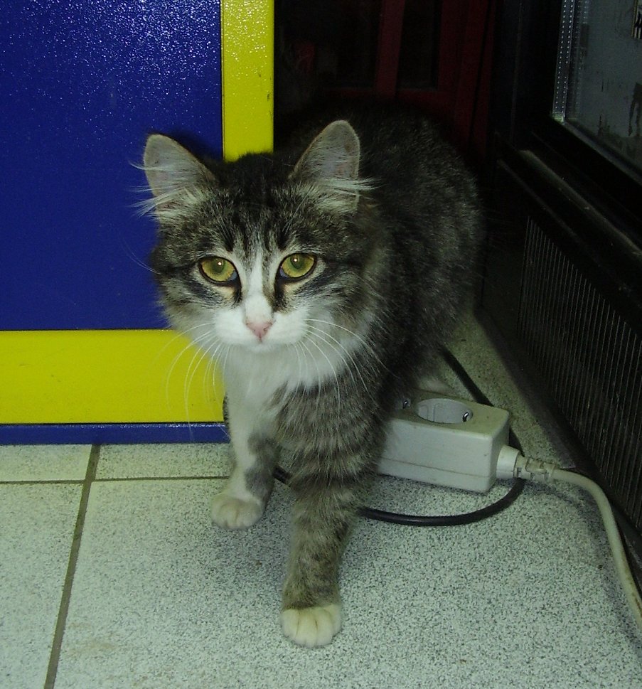 К нашему ларьку во дворе прибился вот такой котенок. Вроде пол женский. Кошечка. Очень много людей ругаются на продавщиц, которые его не гонят. Иногда (редко) его запускают внутрь. Хозяева магазинчика такого не приемлют. С ужасом ждём холодов. Девочка-подросток. Кому серо-белую кису! Из особенностей характера - невероятная ласковость.