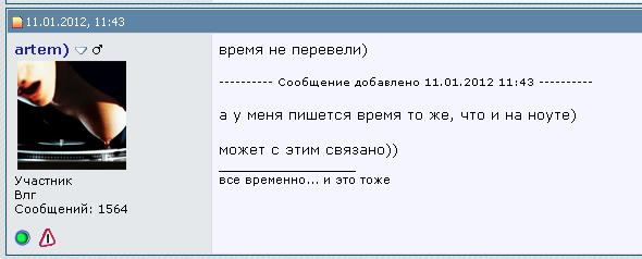 время не перевели) ---------- Сообщение добавлено 11.01.2012 11:43 ---------- а у меня пишется время то же, что и на ноуте) может с этим связано))