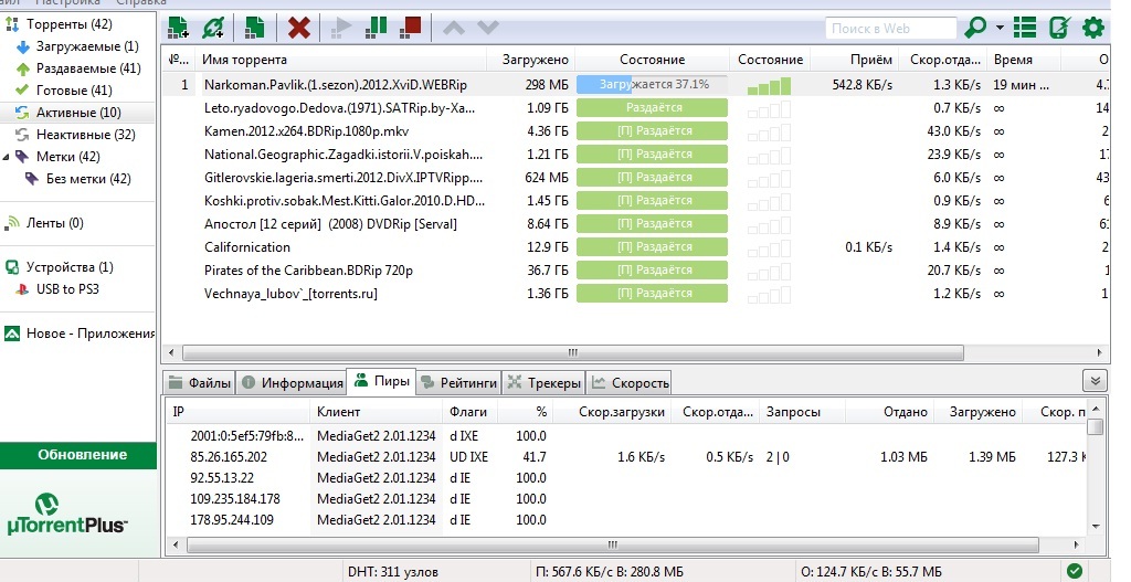 Патриарх, попробуй медиагетом покачать. ИМХО он пошустрее. ну как же? если качать с внутреннего ресурса, то внешка отваливается п.с. у всех каналы ТВ (из пакета дабл) исчезают потихоньку? уже куча каналов отвалилось - Наука20, 1000русское кино, дисней...